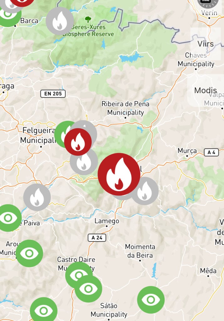 Beide Wochen waren von einer angespannten Waldbrandlage mit zahlreichen Großlagen geprägt. Das Wetter begünstigte ein extremes Feuerverhalten. Unsere Kräfte vor Ort haben erneut viele Stunden im Einsatz mit unseren Freunden der Bombeiros verbracht. Hierbei wurden Sie durch Mitglieder des Vereins in Deutschland durch Wetteranalysen und Lageberichte unterstützt.