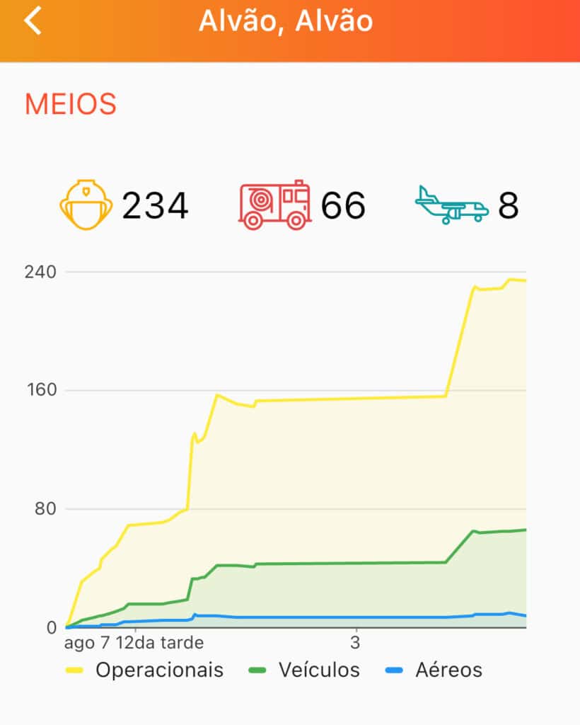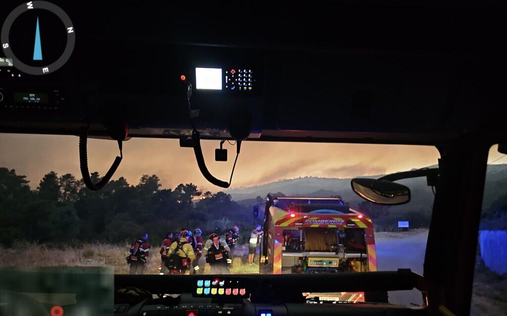 Die Kräfte des Waldbrandteams wurden in den regulären Wachalltag eingebunden und durch einen Liaison (Verbindungsmitglied der lokalen Feuerwehr) betreut. War am ersten Tag noch Fahrzeugpflege und Ausbildung möglich, gab es am Mittwoch eine Alarmierung zu einem Großbrand in den südwestlichen Bereich nach Alvao. Die Anfahrt konnte hier bereits auf Sicht erfolgen, so dass zahlreiche Kräfte nachalarmiert werden mussten.