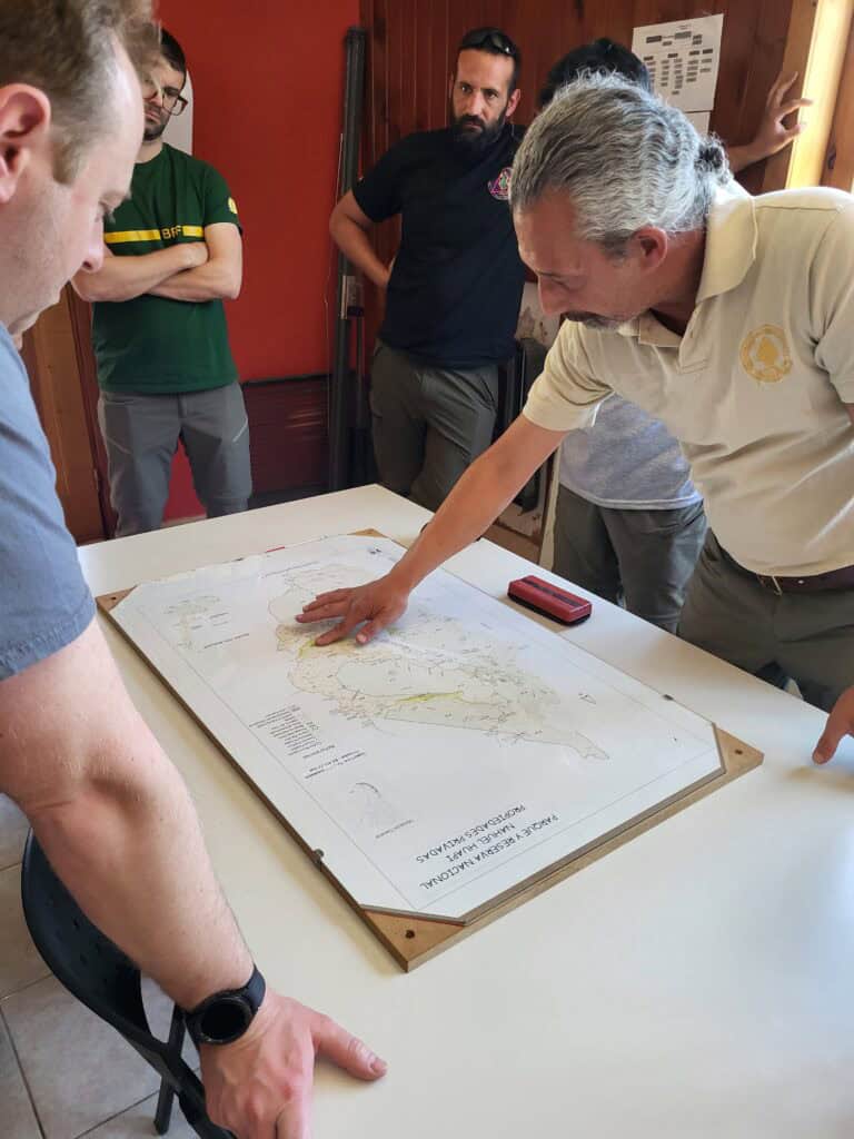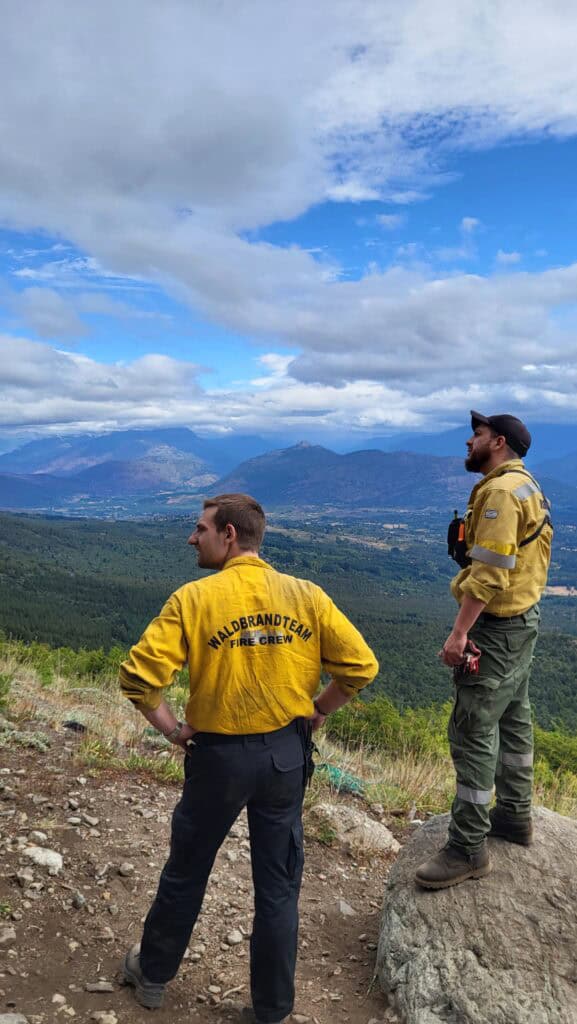 Nach dem Start der Anreise am 17. Januar erreichten unsere Mitglieder wie geplant am folgenden Tag unsere Partner in Bariloche. Der Kontrast zum Wetter in Deutschland war enorm, da aktuell Sommer in Argentinien ist. Hier waren zu diesem Zeitpunkt milde 25 Grad Celsius. Nach der Ankunft wurde direkt der botanische Garten besichtigt. Hier wurden die einheimischen und endemischen (eingeschleppten) Arten vorgestellt. Dies ist auch bei der Beurteilung des Feuers bzw. seiner Entwicklung ein zu berücksichtigender Faktor. Im Anschluss ging es zusammen mit den Mitgliedern der NGO SOS Wildfire ins Nationalparkmuseum im Zentrum Bariloches. Hier gab es interessante Einblicke in die Struktur und Geschichte des Gebietes. Ebenfalls interessant war der Besuch bei der Firma INVAP. Diese stellt Satelliten her. Hier ist ein Projekt, welches zur Waldbrandfrüherkennung dient angesiedelt. Hierzu konnte eine interessante Diskussion geführt werden. Als letzter Programmpunkt stand die Besichtigung der Waldbrandbrigade des Nationalparks Nahuel Huapi und ein Einblick in deren Equipment und Fuhrpark auf dem Programm. Auch hier gab es einen interessanten Austausch zur Waldbrandprävention.